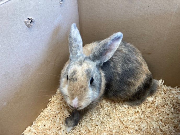 Een dwergkonijn van 2 jaar werd aangeboden op de praktijk met pijn bij het urineren. Ze begon ook minder te eten en was minder vrolijk dan anders.